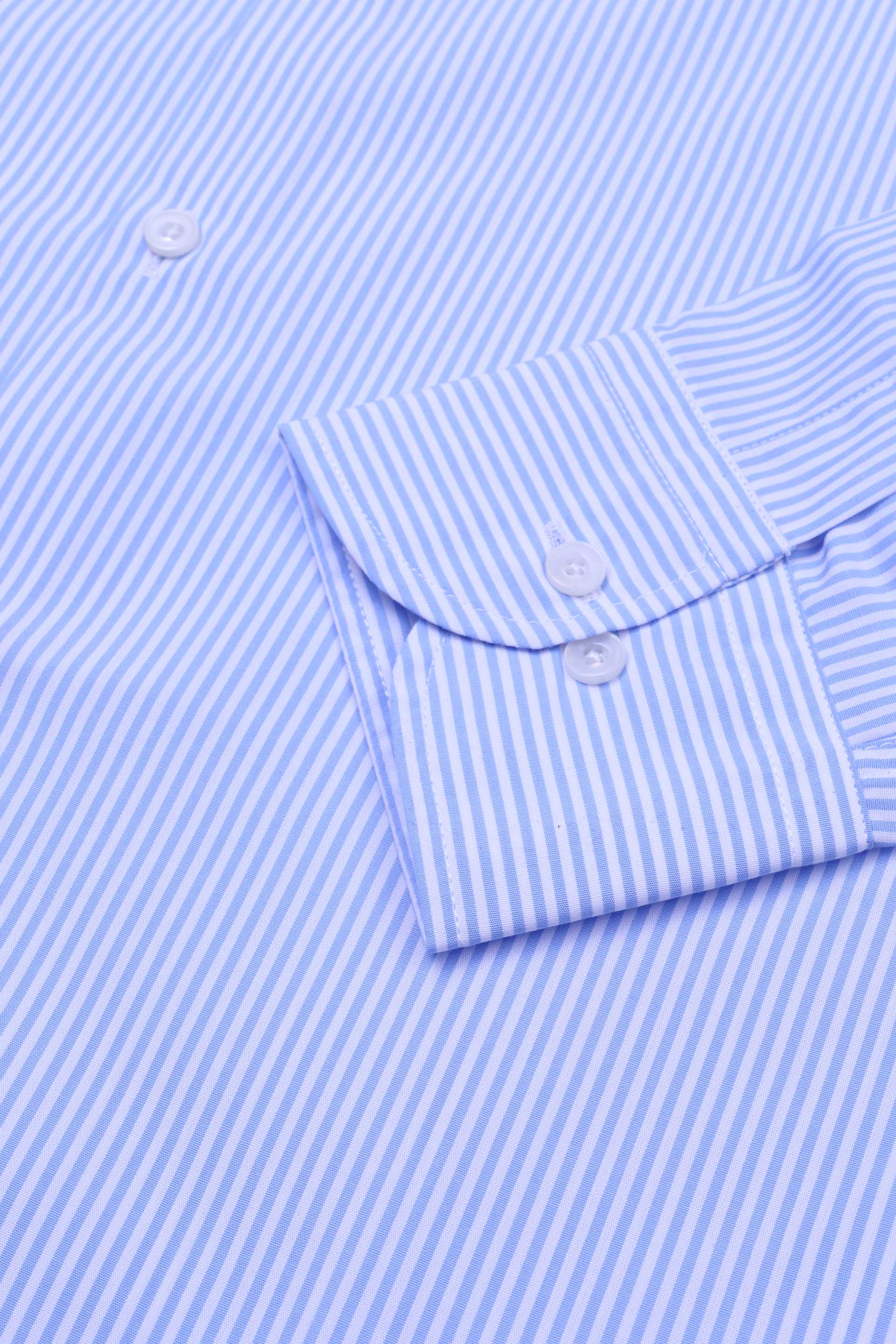 Slim fit striped cotton poplin button-down shirt with wrinkle-free treatment. Light blue - Light blue/white