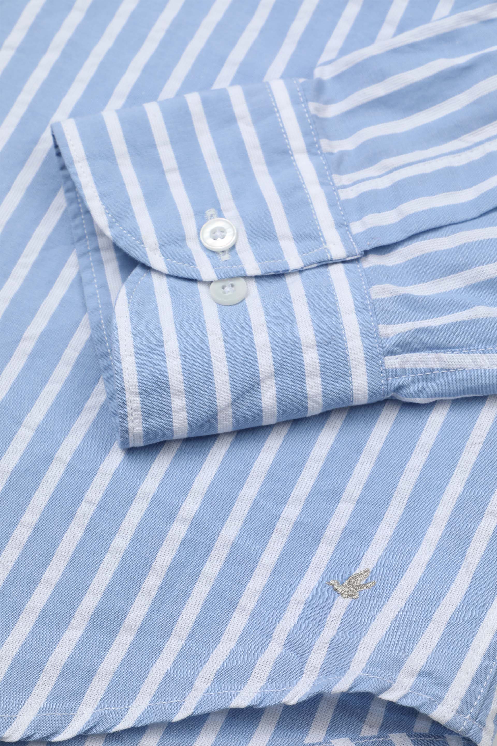 Slim fit shirt in striped cotton poplin with spread collar and embroidered logo. Light blue - Avio ch/bianco
