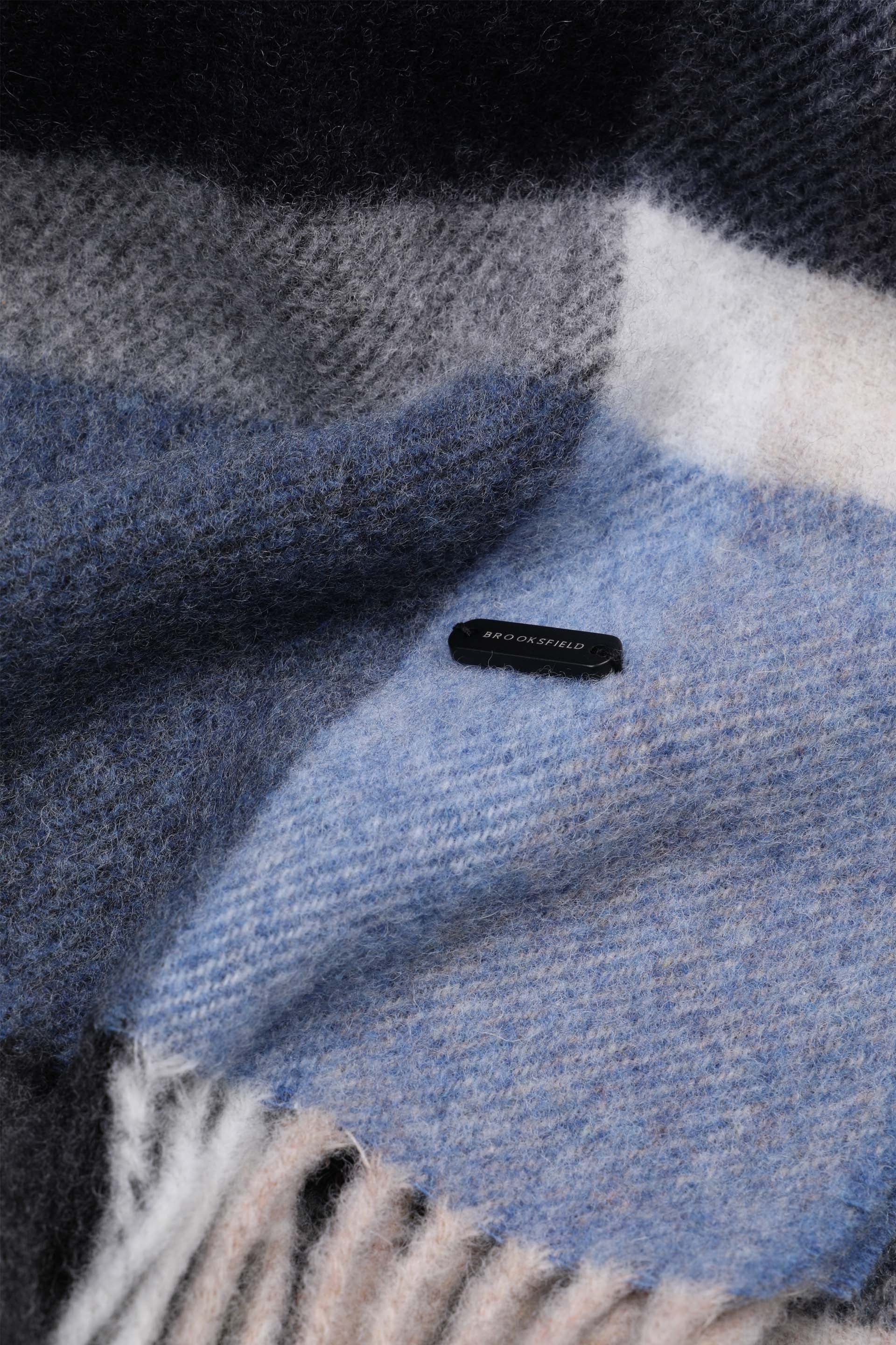 Scarf with fringes in pure virgin wool, featuring a maxi check pattern. Blue - Blue/Lightblue/Beige